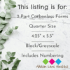Our Quarter Size 2-Part Custom Carbonless Forms are perfect for businesses looking for an efficient way to keep track of transactions. Measuring 4.25" x 5.5", this listing offers our black/grayscale option and can be customized with your company name and logo. This listing also includes our numbering option for easy organization.